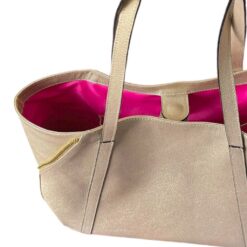 - Bolso tipo Shopping en cuero de grano sutil color dorado perla.