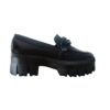 Elaborada a mano en fibra textil y cuero, cuentan con una suela delgada, tacón de 3cms forrado en cuero y un accesorio corbatín en brillantes, perfectas para estilizar todo tipo de atuendo.