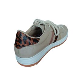 - Cuero liso color nude, rosa y dorado, combinado con animal print en talonera